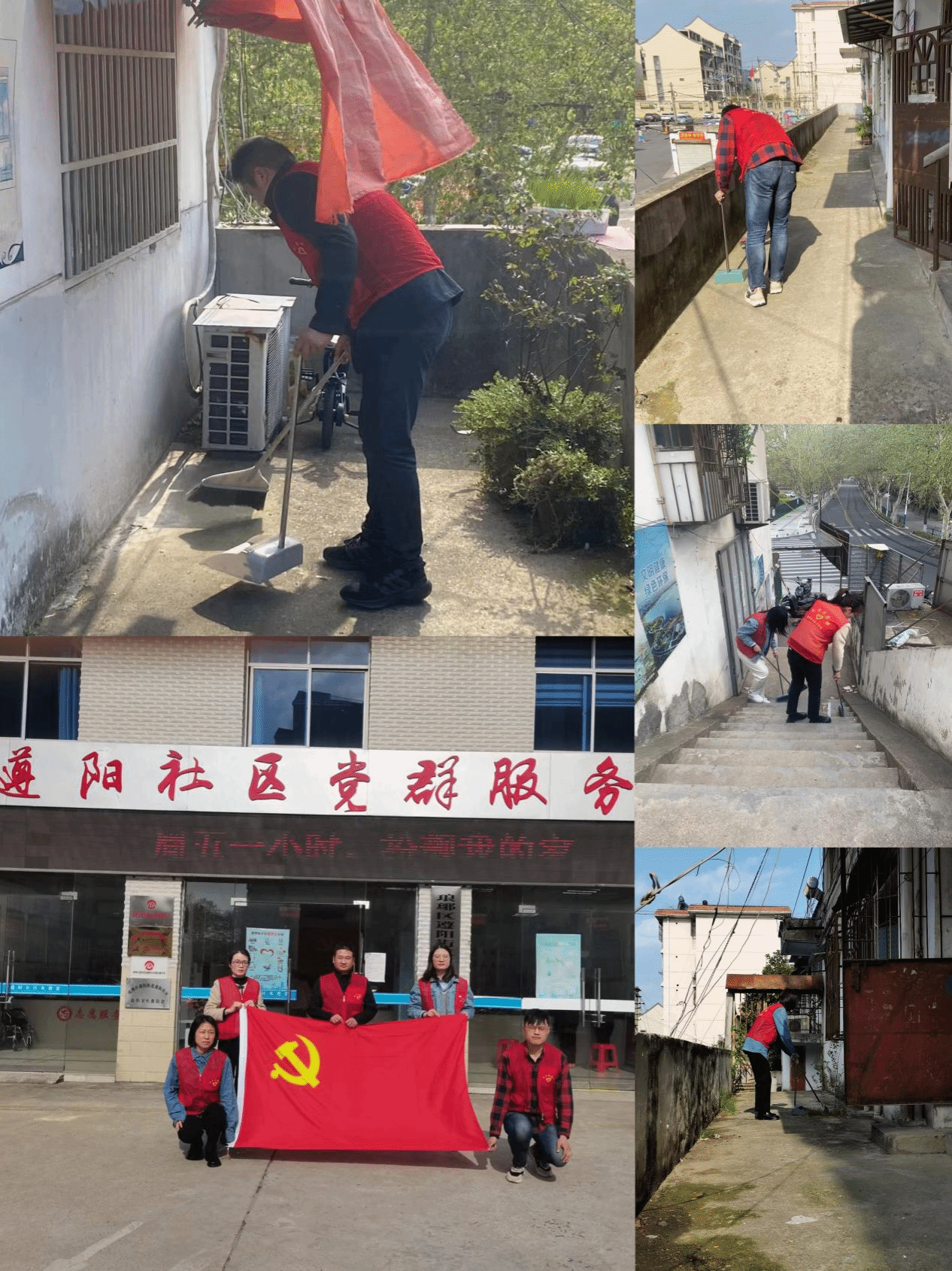 活动中,志愿者们身着红马甲,带着捡拾器、扫帚等劳动工具对遵阳社区内部分无物业管理小区公共区域进行了打扫和清理,经过大家的辛勤劳作,社区环境变得更加干净整洁,志愿者们用实际行动为巩固和提升全国文明城市创建贡献了力量。