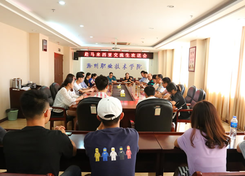 9月,金秋送爽,学校举行赴马来西亚交流生行前辅导暨欢送会。校党委委员、副校长江洁出席会议并讲话。学校办公室、成人教育学院、经济贸易系、信息工程系、传媒工程系及赴马来西亚交流的16名学生参加了会议。成人教育学院院长李永泉主持会议。