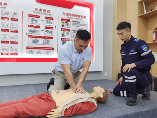 实操环节中,队员们分组进行模拟演练,在教官一对一指导下,反复练习心肺复苏按压深度与频率、海姆立克冲击力度与位置、包扎的松紧度把控等关键动作。面对队员操作中的误区,教官及时纠正并示范,确保每个人都能熟练掌握动作要领。培训现场学习氛围浓厚,队员们纷纷表示,此次培训内容贴近实际需求,对提升自身应急救援能力具有重要意义。