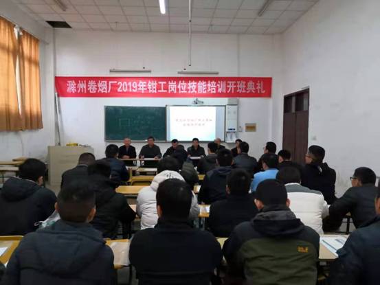 2019年11月25日上午滁州卷烟厂2019年钳工岗位技能培训班在我院钳工实训教室隆重举行。必赢76net线路官网继续教育学院李永泉院长、机械与汽车工程学院张信群院长、职业技能鉴定所吕波科长,以及滁州卷烟厂人力资源科科长、车间主任等相关领导参加了开班典礼。