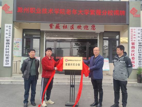 2023年3月30日上午,继续教育学院院长、老年大学常务副校长李永泉一行前往琅琊区清流街道紫薇社区,为老年大学紫薇社区分校成立揭牌、并给社区书记石汉韦同志颁发了分校校长聘书。