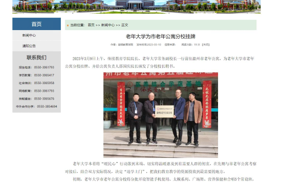 老年大学被评为2023年滁州市老年教育示范学校