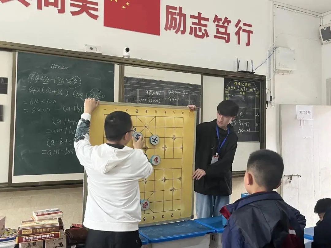 在象棋课上,志愿者老师用幽默风趣的语言和浅显易懂的方式带领小朋友们学习象棋知识,在兴趣的驱动下,孩子们都十分专注地听讲,遇到不会的地方及时请教,氛围十分活跃。