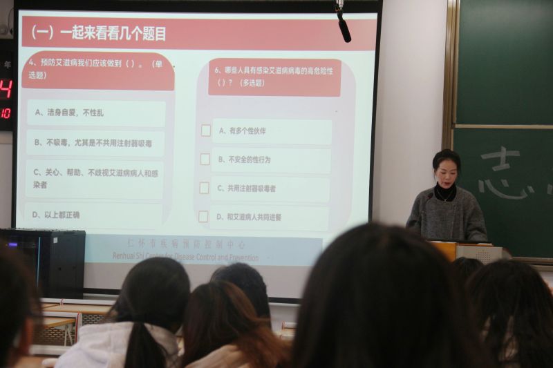 活动伊始,舒丽医生以艾滋病知识问答小游戏破冰,提问诸如“哪些日常行为有感染艾滋病风险”等问题,激发同学们好奇心与参与热情,现场气氛瞬间活跃,大家在抢答互动中,对艾滋病相关高危行为及风险有了初步认知。