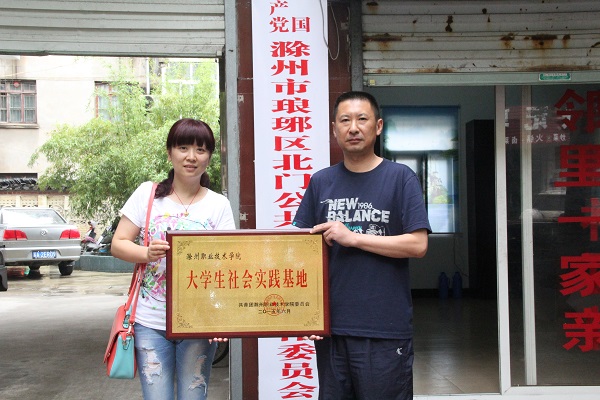 6月30日下午,院团委书记王蓓蓓、副书记刘杰带领我院暑期社会实践小分队来到滁州市琅琊区北门社管中心举行大学生社会实践基地授牌仪式。此次挂牌为我院社会实践活动团队建立长效的学习机制,为更好的开展社会实践活动打下了坚实的基础。