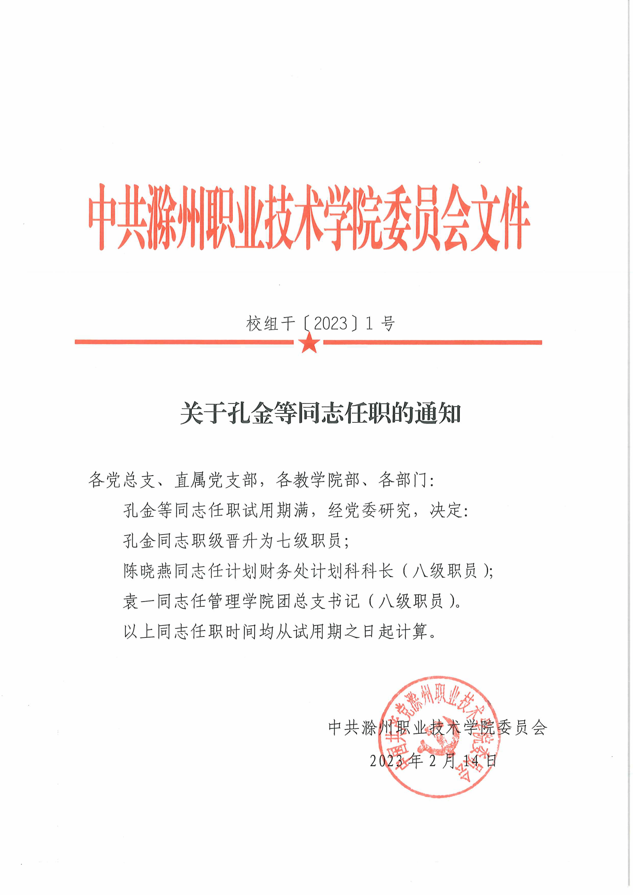 关于孔金等同志任职的通知