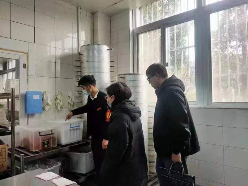 为了进一步压紧压实食品安全属地管理和食堂主体“两个责任”,严防严管严控食品安全风险,全力保障师生“舌尖上的安全”,2月 21 日下午, 经开局市场监督局余成主任带队对必赢官网食品安全工作进行专项检查。后勤服务中心餐饮管理科胡永光科长及食堂负责同志参加。