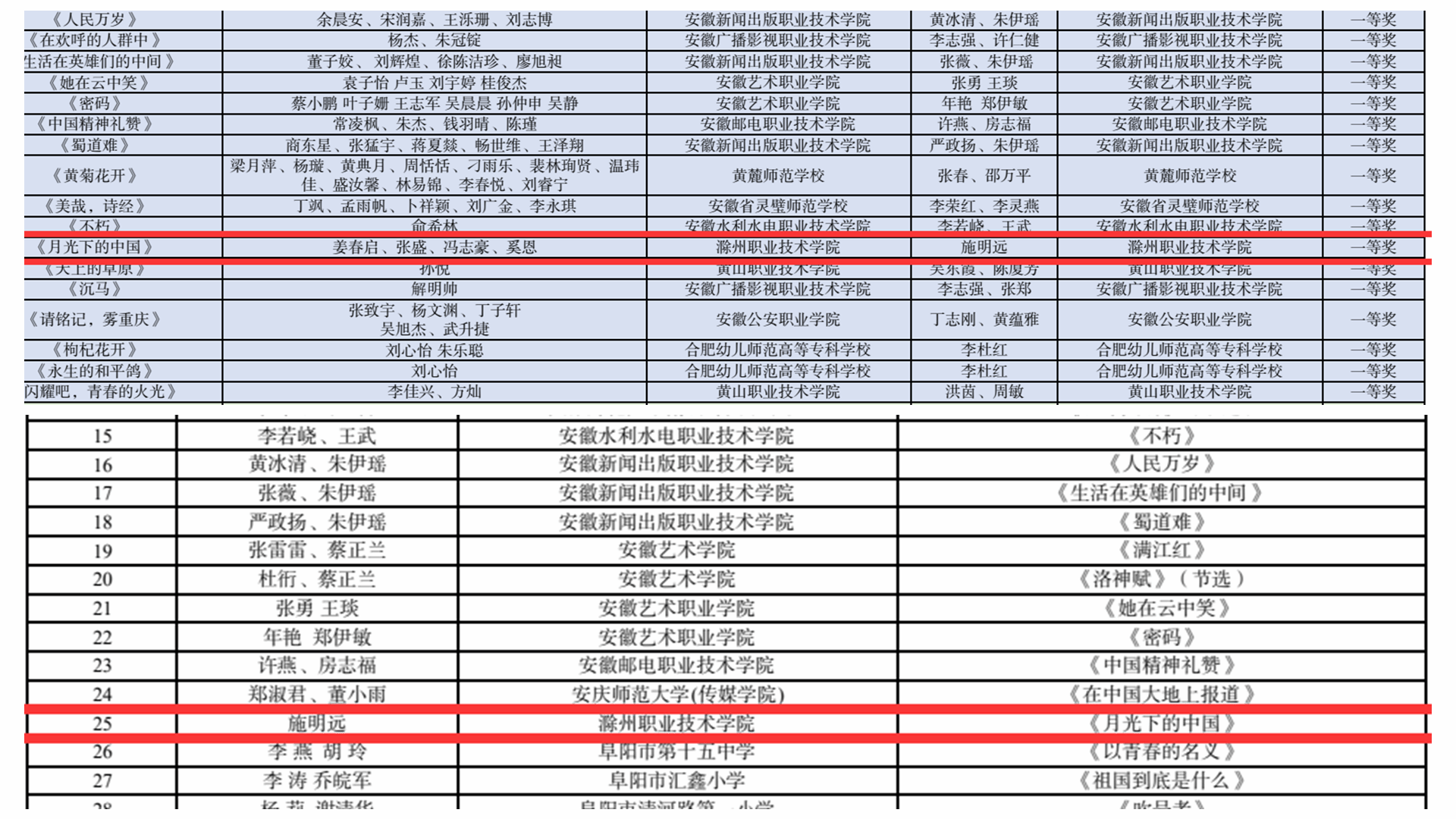 近日,在由教育部、国家语委举办的第五届中华经典诵写讲大赛中,必赢官网姜春启、奚恩、冯志豪、张盛四位学子的朗诵作品《月光下的中国》荣获安徽赛区职业院校学生组一等奖并推荐至全国复赛,食环学院教师施明远获“指导教师奖”。