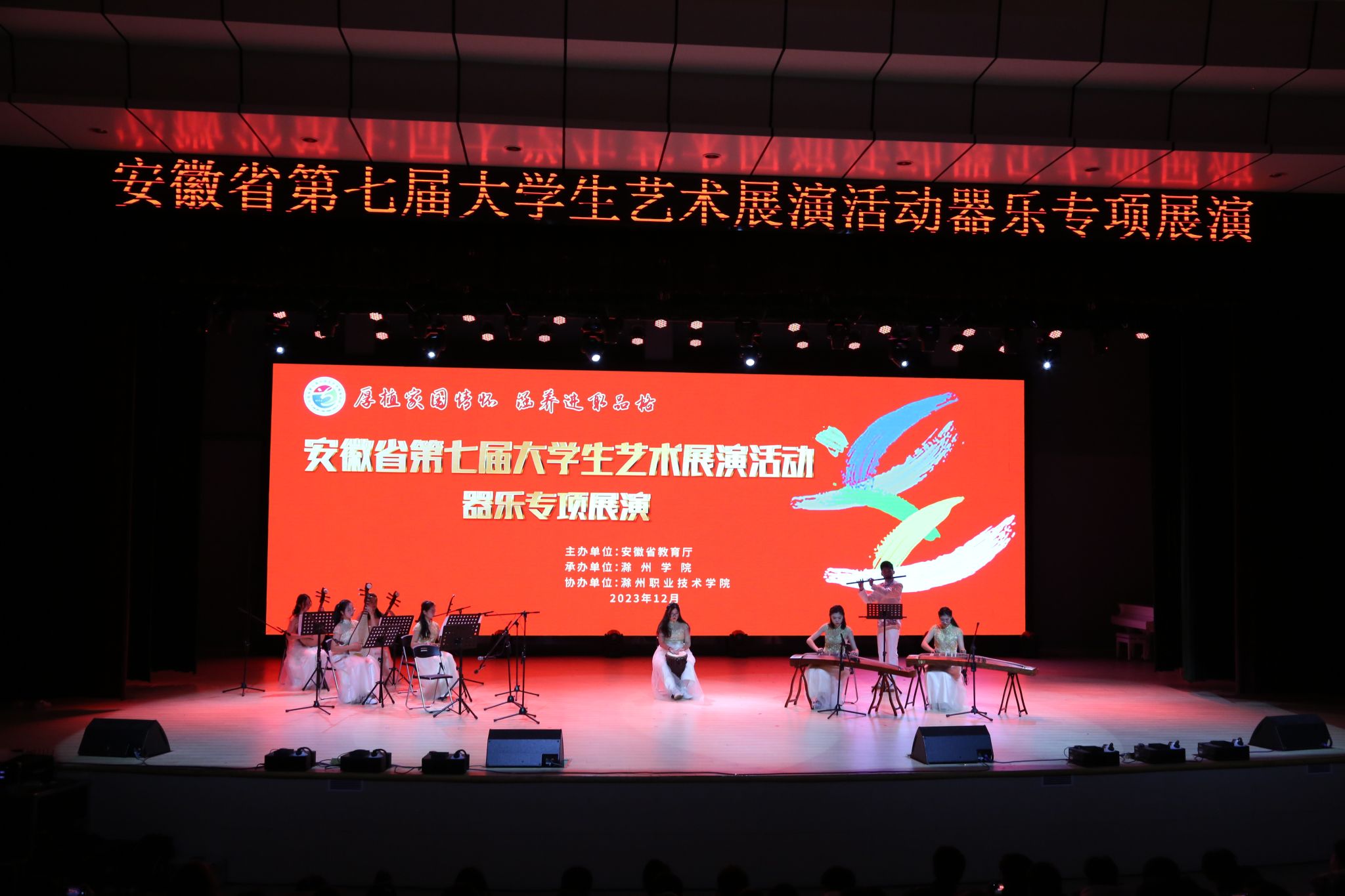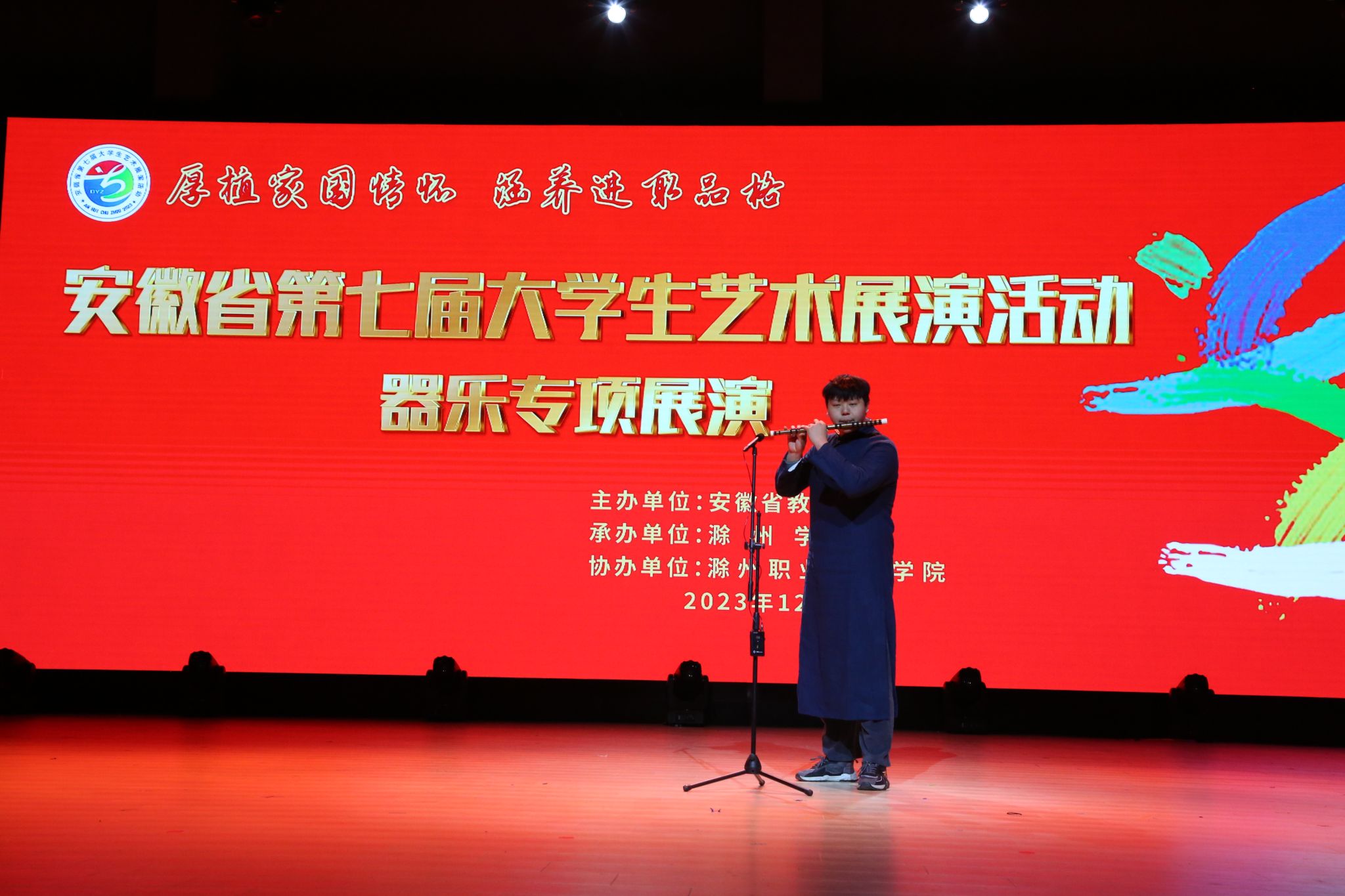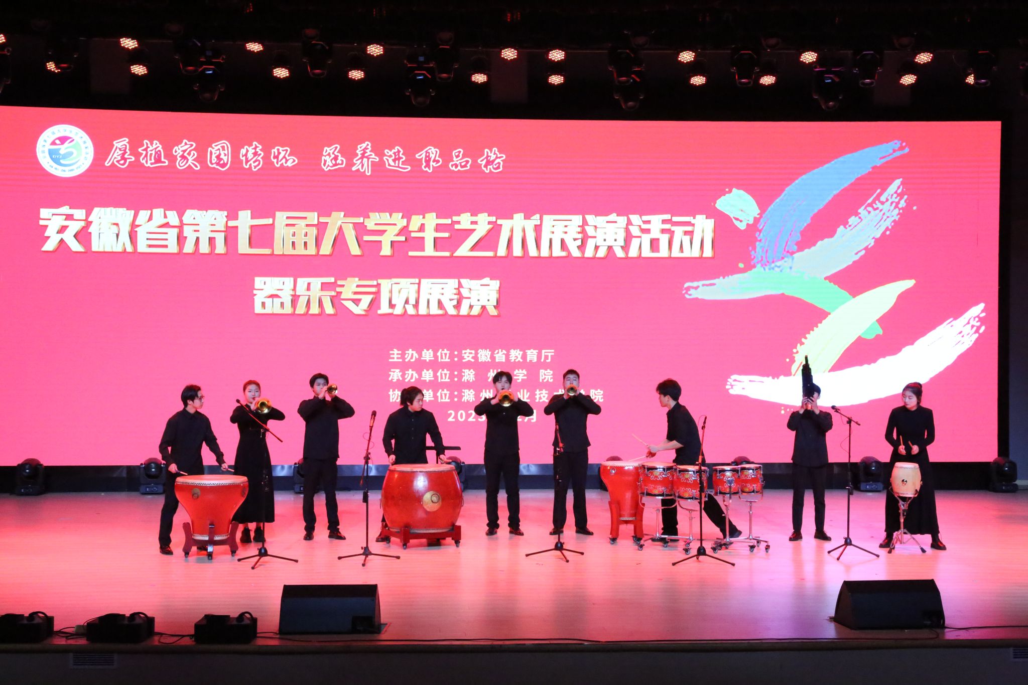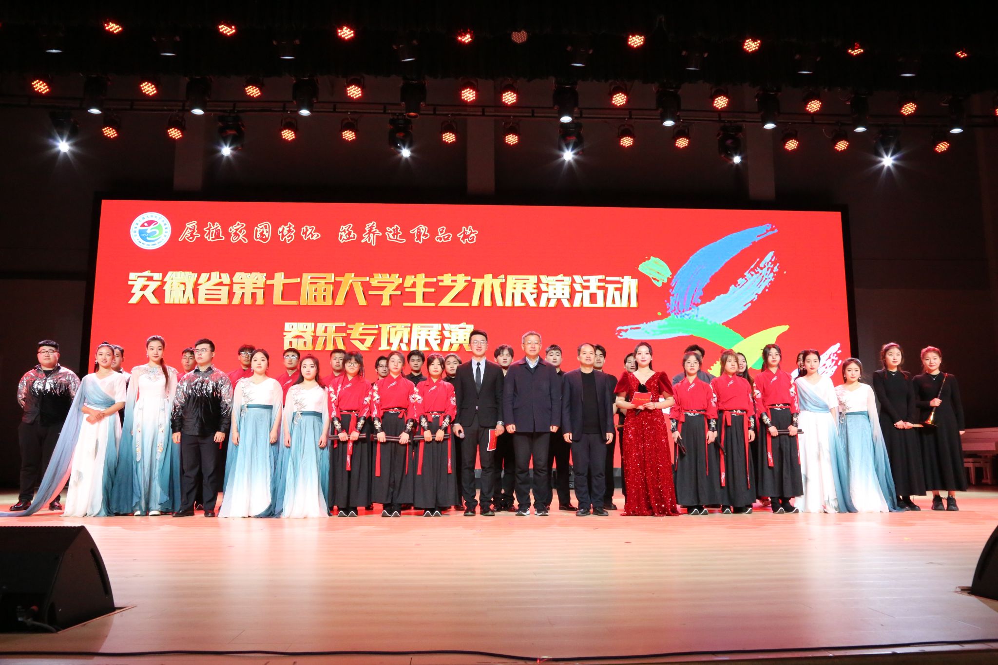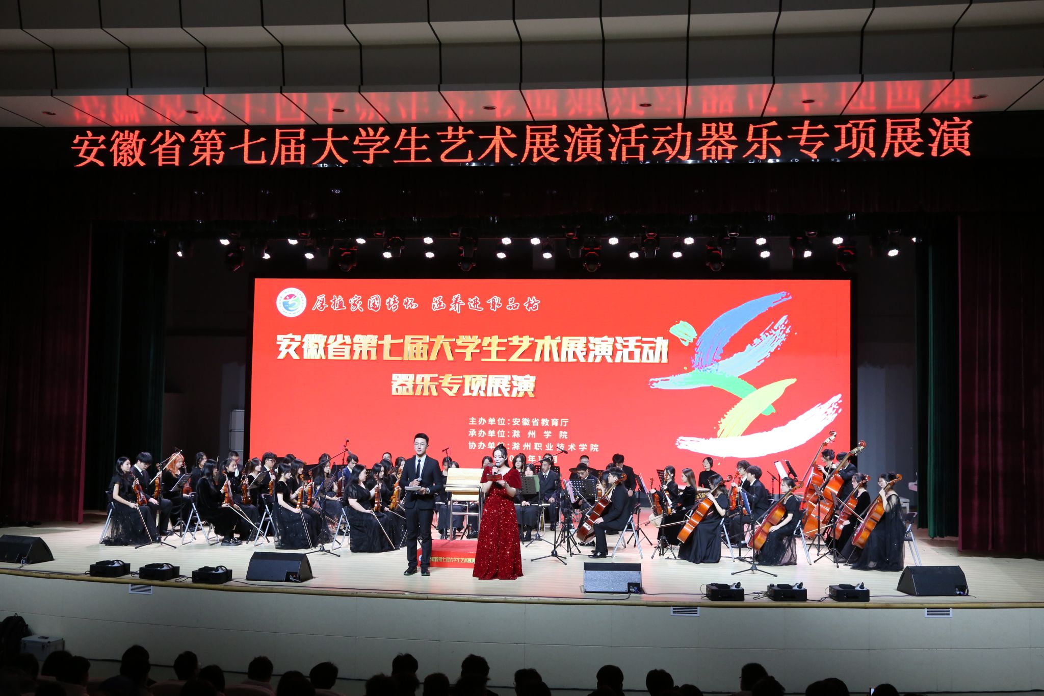 12月17日下午,由安徽省教育厅主办、滁州学院承办、必赢76net线路官网协办的安徽省第七届大学生艺术展演器乐专项展演在必赢官网学术报告厅隆重举行。安徽省教育厅体卫艺处处长葛德连,滁州学院党委副书记、校长郑朝贵,必赢76net线路官网党委书记曹付忠,必赢76net线路官网党委委员、工会主席李平权出席本次活动,省内9所高校900余名师生参加。