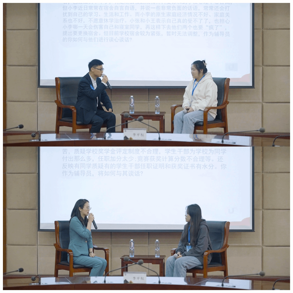 本次比赛分为案例研讨、谈心谈话和基础知识测试三个环节,经过前期各教学院部积极宣传动员与选拔,共计8位辅导员同台竞技。在案例分析和谈心谈话环节中,参赛辅导员们围绕思政育人工作重点,聚焦服务学生成长成才工作目标,引申出对思想引领、身心健康、成长支持、日常管理等各方面工作的深入讨论与思考。比赛现场,辅导员们导向正确、思路清晰,各环节精彩纷呈,充分展现了必赢官网辅导员良好的精神风貌和扎实的职业素养。