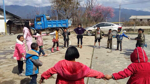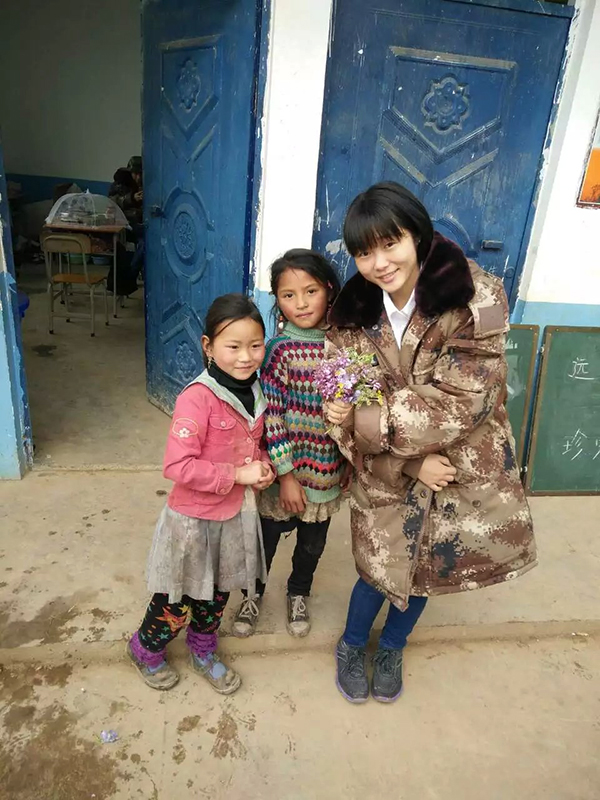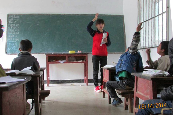 2014年元旦过后不久,接到联盟的通知,叶秀芝被分派到云南迪庆藏族自治州维西傈僳族自治县一个偏远山区的小学里。二月份来到维西,一下车一抬头,满满的湛蓝,像小时候常用的英雄牌的蓝墨水。半山腰处,只有小小的几间去年新翻修的房子,加上25个孩子和一个当地老师,却组成了一个正儿八经的学校,这种景象一般只会在电视或新闻报纸上才看到,那是叶秀芝在现实中第一次这样近的接触到这样的场景。