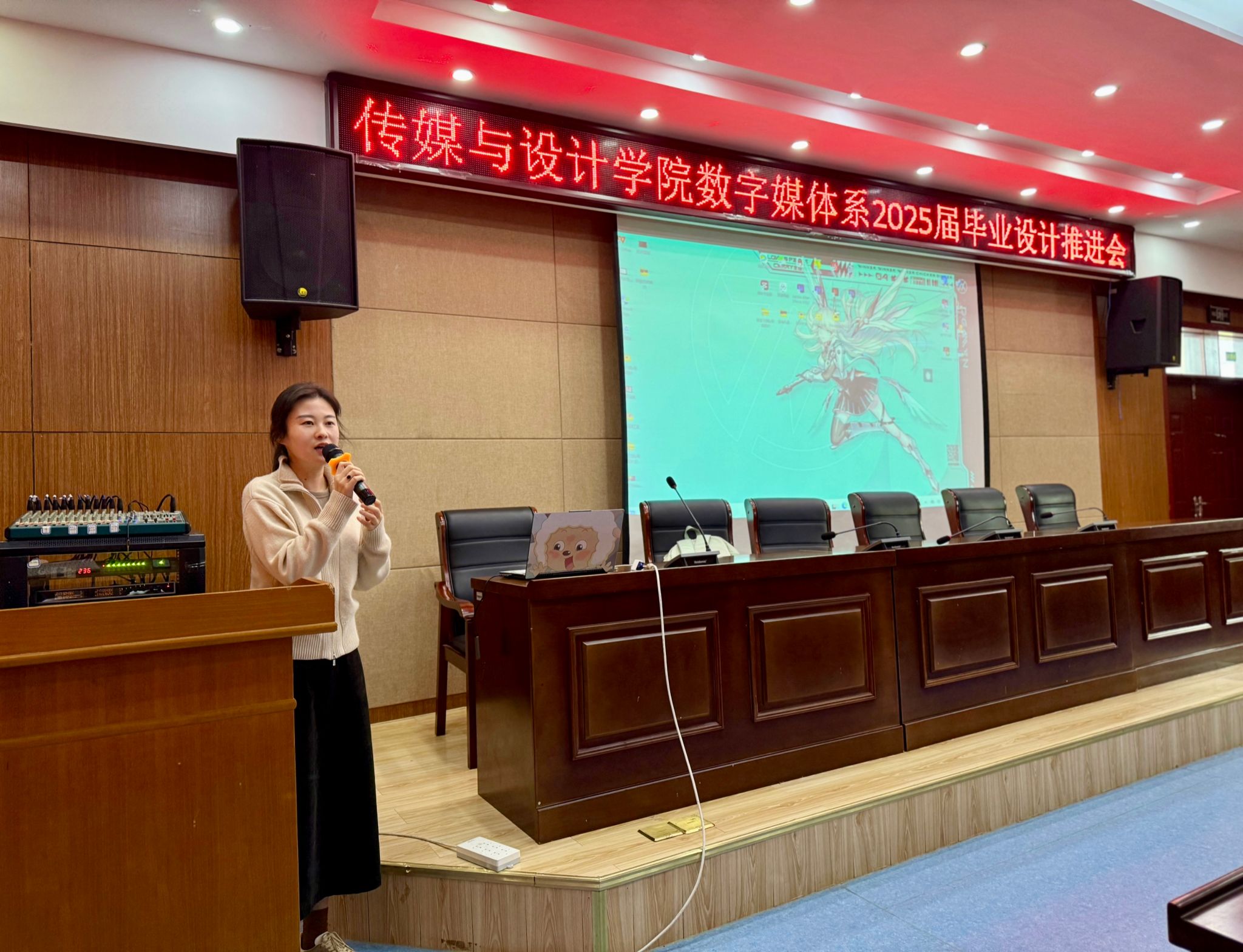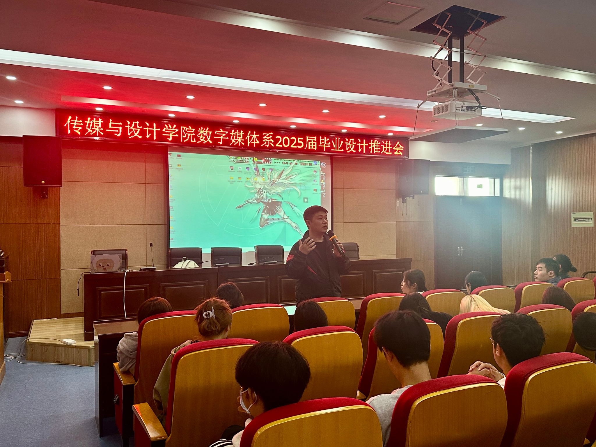 为扎实推进数字媒体系2025届毕业生毕业设计工作,指导和帮助毕业生充分掌握毕业设计流程、做好自我规划、创作优秀作品,11月11日,数字媒体系在南阶205教室召开了2025届毕业设计推进会。传媒与设计学院数字媒体系主任、党支部书记李雯雯、动漫制作技术专业负责人王一超出席会议,骨干教师王星辰、林茜、王思腾、赵璇及数字媒体系全体毕业生参加会议。会议由数字媒体系教师匡卓凡主持。