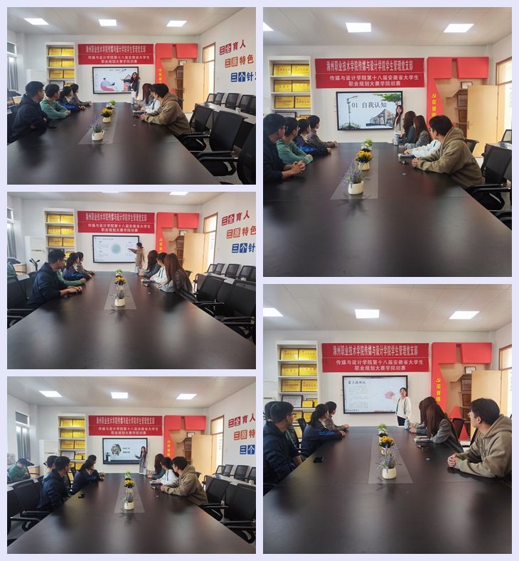 11月14日上午,传媒与设计学院于德馨楼302会议室举行传媒与设计学院举办第十八届安徽省大学生职业规划大赛学院初赛。本次大赛在传媒与设计学院学生管理党支部组织下,以“筑梦青春志在四方 规划启航职引未来”为主题,在全学院范围内动员学生积极参赛。本次选拔赛的参加大赛评委团由传媒与设计学院党总支秘书刘娟老师、团总支书记瞿康宁老师与全体专职辅导员组成。