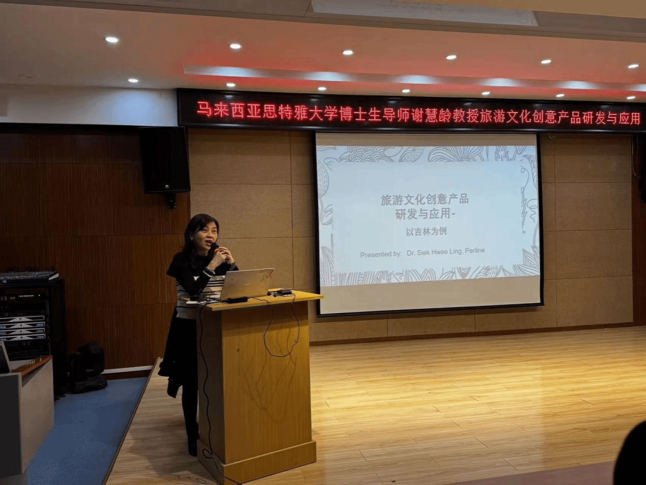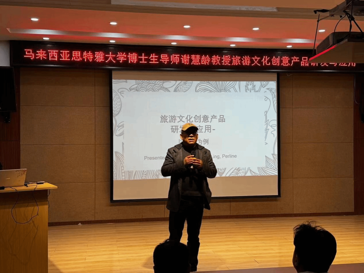 11月19日下午四时,马来西亚思特雅大学博士生导师谢慧龄教授莅临必赢官网,于南阶203教室成功举办了一场题为“旅游文化创意产品研发与应用”的精彩讲座。此次活动由学校中外合作办学办公室主任李学军担纲主持,传媒与设计学院动漫制作技术专业负责人王一超老师、相关辅导员以及2022级、2023级动漫制作技术(中外合作)班的全体学子共同聆听了这场学术盛宴。