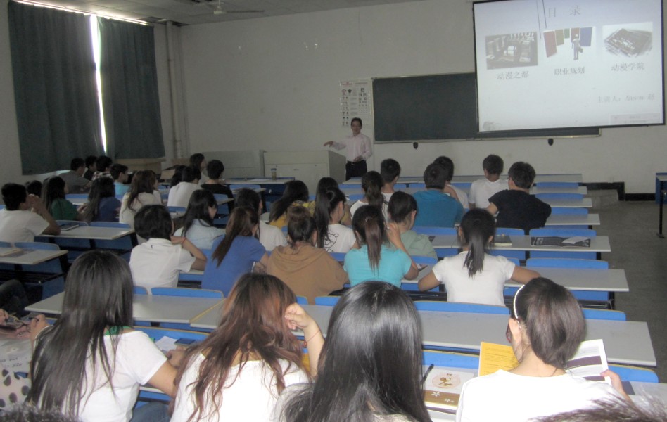 国家十二五规划大力支持文化创意产业发展,动漫行业也将在未来的5年里展现出其独有的优势,获得突飞猛进的发展。赵祥敏老师围绕动画职业生涯规划进行透析,如何让我们的学生去适应当今火爆的中国动漫市场,博得学生们阵阵掌声,现场气氛相当精彩。