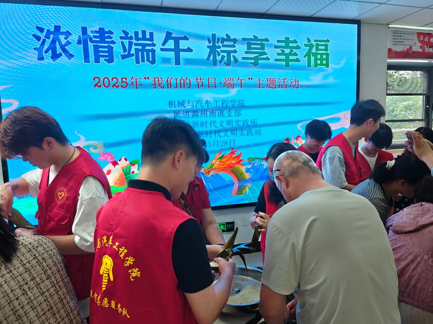 端午佳节,粽叶飘香。为弘扬中华优秀传统文化,丰富社区居民的精神文化生活,增进邻里之间的感情,5月28日,机械与汽车工程学院学生代表赴湖心路社区参加了一场以“浓情端午,粽享幸福”为主题的端午节活动,其中众多居民热情参与。