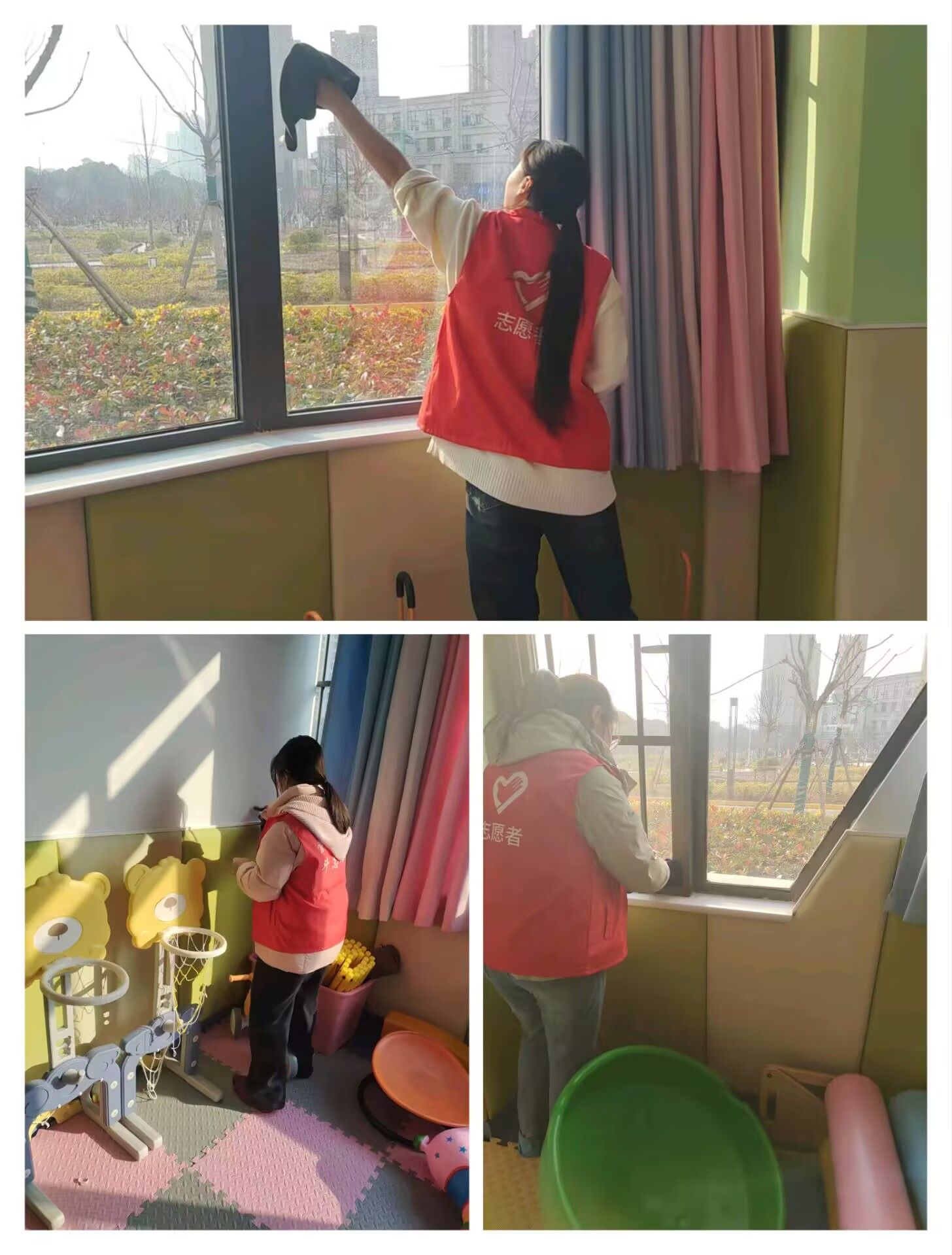 活动当天,志愿者们热情高涨,抵达医院后,就在医务老师的带领下迅速行动起来。他们手持清洁工具,认真擦拭每一扇窗户,不放过任何一处灰尘,为孩子们打造了整洁、明亮的环境。完成清洁工作后,志愿者们开启与孩子们的互动陪伴环节,志愿者们耐心倾听孩子们的话语,用温暖的回应给予鼓励,还通过画画、做游戏等方式,打开孩子们的心扉,现场充满欢声笑语。