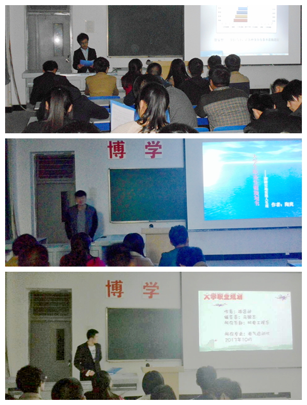 为了帮助机电系同学明确每一阶段的职业生涯发展。2013年11月4日晚6:50,机电系职业规划大赛在5102教室顺利开赛。本次大赛由去年比赛获金奖的李娜,陈亚恒,副主席王雨等担任评委。 比赛在主持人向现场观众介绍比赛规则后,正式开始。参加本次比赛的11名选手分别用PPT展示结合清晰有序的演讲进行了个人职业规划,评委在他们的PPT制作上和演讲的问题做了详细点评。比赛中,选手们思路清晰,得到在场评委和同学们的一致好评。最后,我系选手陆昌昶,虞秀奖,汪远,赵蕴阳,陶爽,乔冬冬成功晋级比赛。