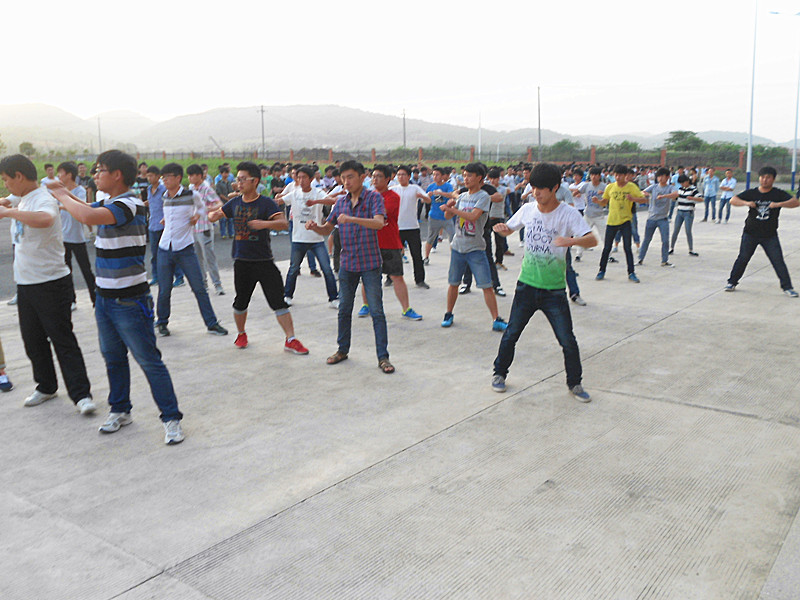 青春舞动勇战炎炎夏日,阳光体育练就健康体魄。为了进一步增强同学们的体质,展现当代大学生的青春风采。2014年5月26日傍晚,机电系在七号楼前举办了广播体操比赛,此次比赛邀请了我系辅导员谢丽丽,张文及学生会部长担任评委老师。活动在热闹的氛围下顺利展开。