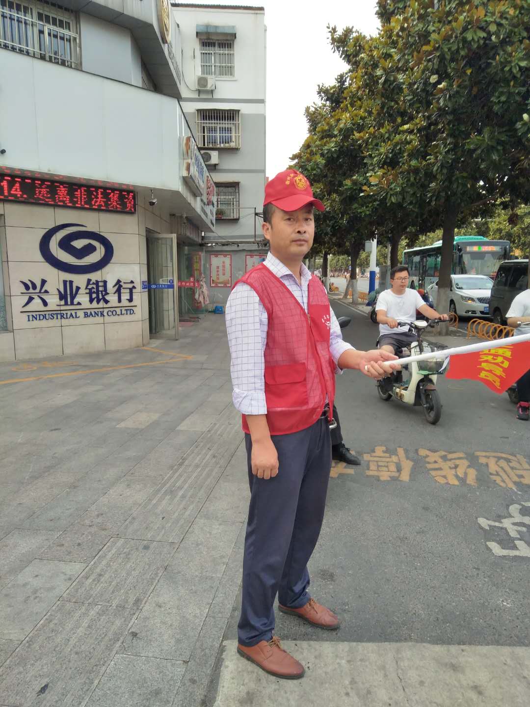 两位老师头戴红帽子、身穿红马甲、手持引导牌,在人群中分外显眼。下午5点正是人流高峰期,他们积极协助交警维持交通秩序,提醒行人注意交通信号灯,对行人不走斑马线、非机动车逆向行驶、闯红灯、乱丢垃圾等不文明行为进行劝导。