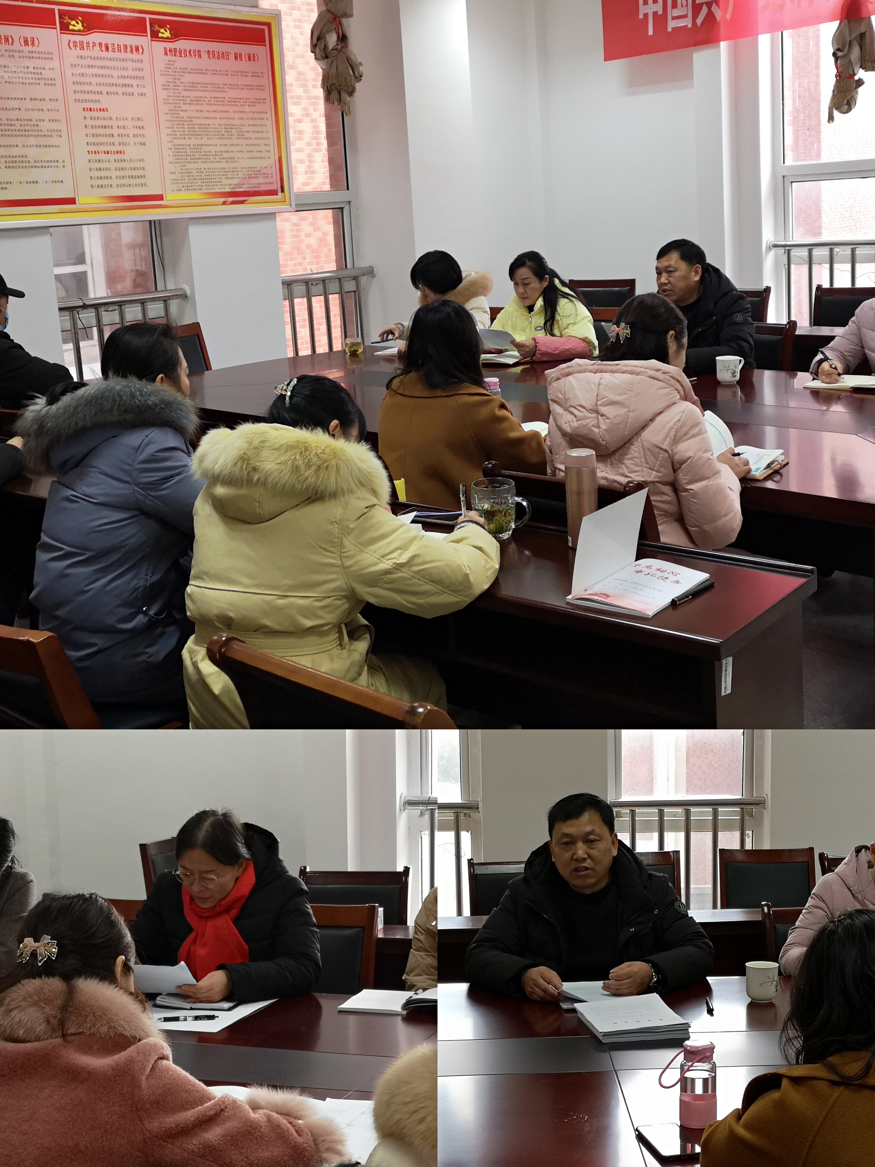 按照日程安排,1月10-11日马克思主义学院在综合楼208会议室进行部门培训,学习国家、省市职教大会会议精神、党的十九届六中全会精神、校第三次党代会精神以及师德师风专题学习,全体教师积极讨论发言,撰写心得体会。1月12日-14日,分别参加了宣传统战部组织的校党委理论学习中心组会议、实验实训中心组织的资产系统培训和智慧教室设备培训、组织人事处组织的解读《中国共产党普通高校基层组织工作条例》、教务处组织的青果教务管理系统培训、宣传统战部组织的宣传思想和意识形态工作、科技处组织的《新时代职业教育课题研究方法及案例举隅》主题讲座、纪检监察室组织的贯彻落实一体推进“三不”机制建设辅导报告等内容,14日下午组织人事处进行培训交流总结,马院教师根据各自的职责分工对号入座,有针对性地参加相关培训。