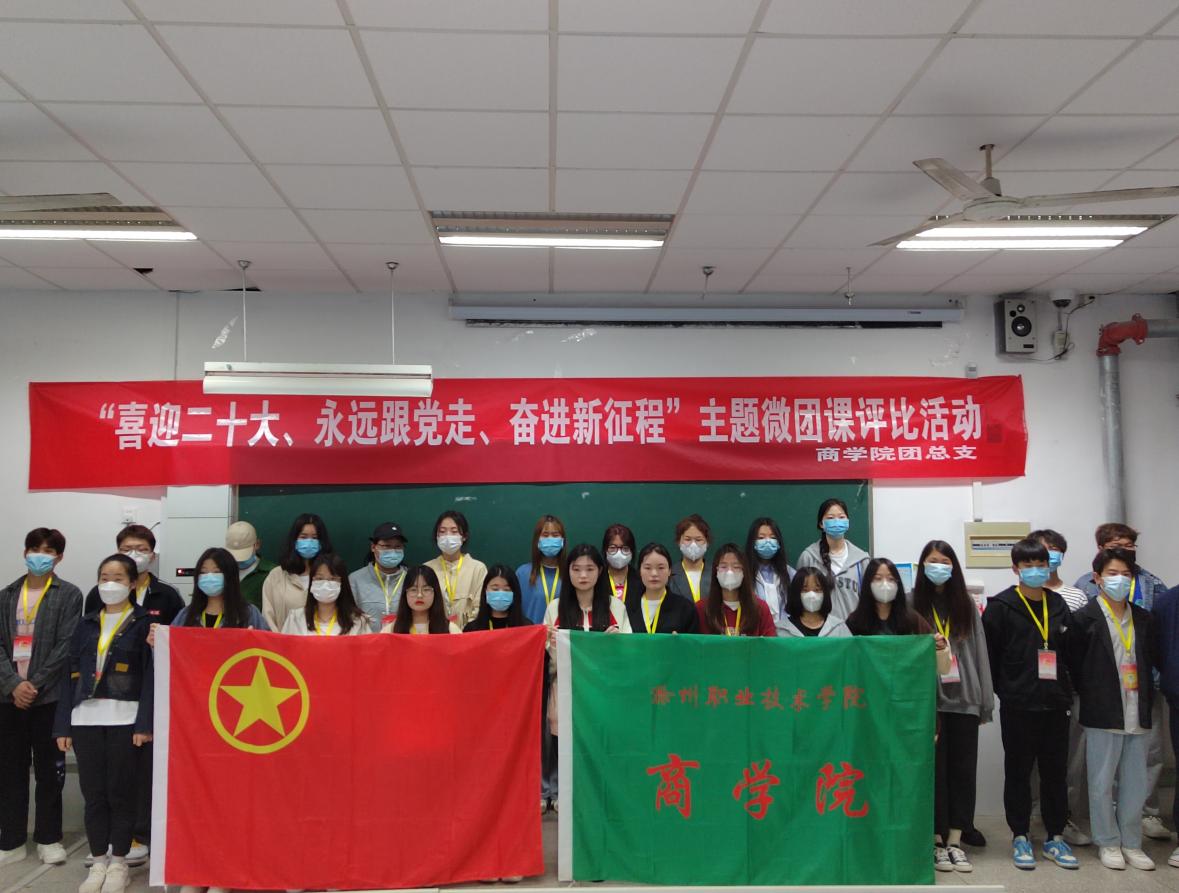为营造喜迎二十大的青春氛围,激励广大青年团员持续深化开展党史学习教育,团结引领广大青年团员永远跟党走、奋进新征程,商学院团总支于5月11日在致真楼1119开展“喜迎二十大、永远跟党走、奋进新征程”主题微团课评选活动,以实际行动迎接党的二十大胜利召开。