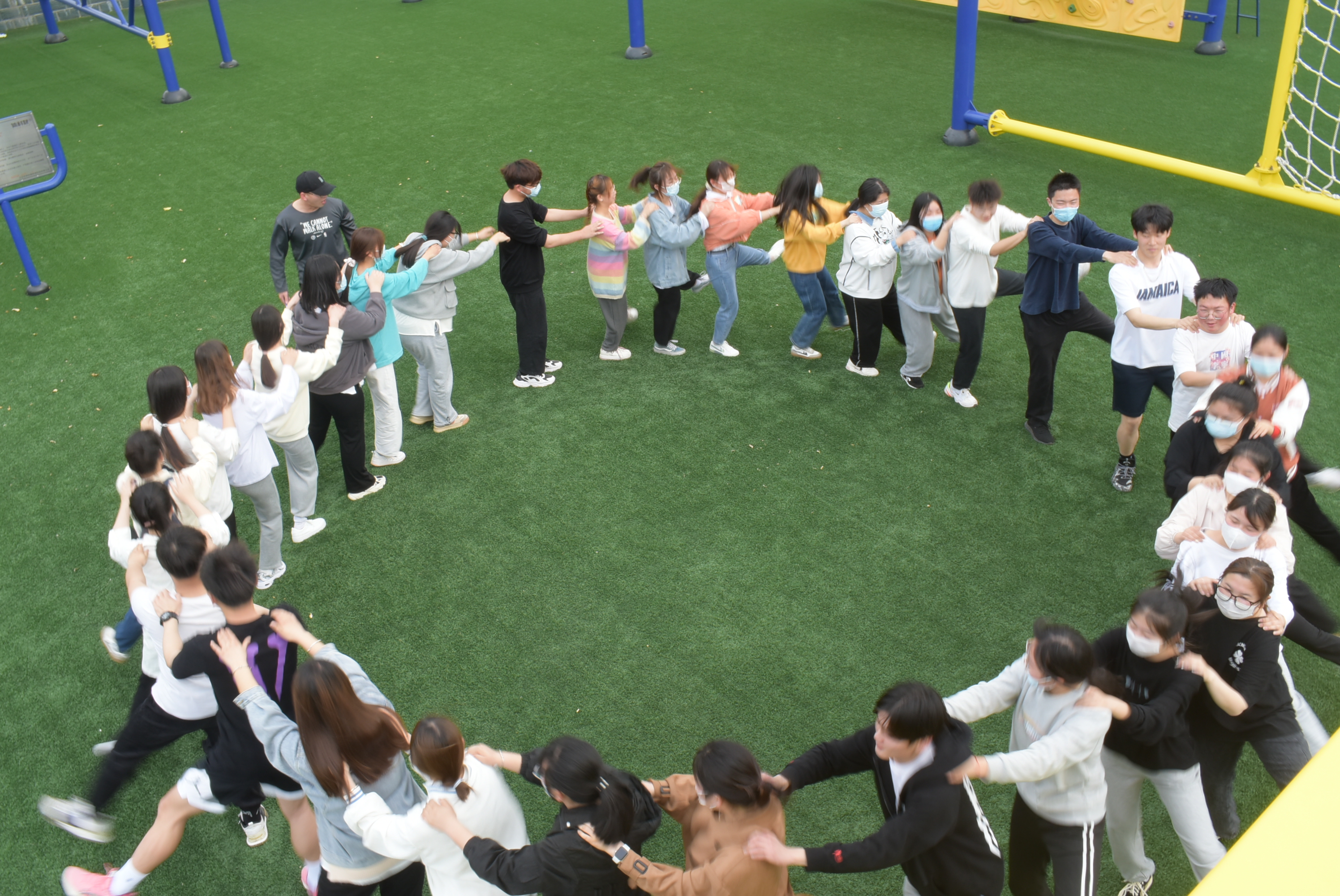 活动开始前,老师带着学生们一起做热身运动,用欢乐舞蹈的方式在热身的同时也迅速提升游戏氛围。而后老师带领同学们开始了本次主题素质拓展活动。本次活动以小组为单位,共设置了“破冰”、“挑战六十秒”、“老虎猎人枪”、“找朋友”、“信任背摔”五个环节,在游戏过程中同学们纷纷投入饱满的热情,各小组的凝聚力在欢声笑语中得到了提升。最后在体育老师的带领下,同学们穿戴好安全防护装备参与“高空探险”,突破自己的极限,为此次活动带来一个有趣刺激的结尾。