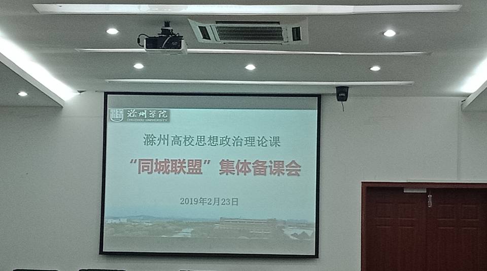 为深入学习领会习近平新时代中国特色社会主义思想和党的十九大精神,贯彻落实全国全省高校思想政治工作会议和全国教育大会的精神,细化对标教育部《新时代高校思想政治理论课教学工作基本要求》,进一步推动习近平新时代中国特色社会主义思想“三进”工作,切实提高思想政治理论课的教学质量和效果,2月23日,滁州高校思想政治理论课“同城联盟”集体备课会在滁州学院行政楼一楼视频会议室举行,滁州学院马克思主义学院院长兼党总支书记汪才明、必赢76net线路官网思政部副主任孔金、滁州城市职业学院思政部主任季金年及来自三所高校的50余名思想政治理论课教师参加了集体备课会。