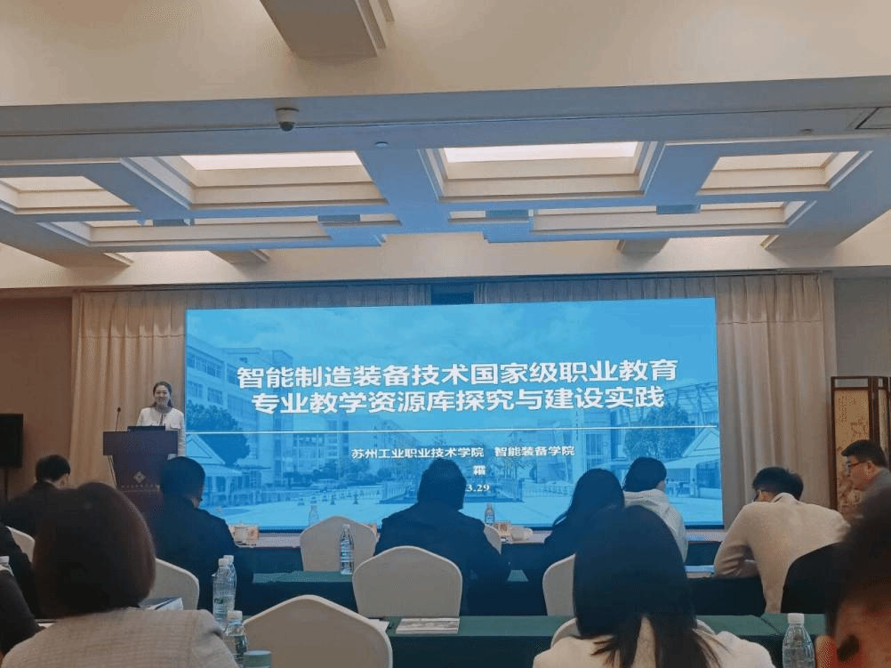 全国机械职业教育教学指导委员会主任郑丽梅重点强调了“理念更新与实践转化、以标准夯实装备制造类专业建设根基”;苏州工业职业技术学院智能装备学院于霜院长针对“智能制造装备技术国家级职业教育专业教学资源库探索与建设实践”做了详细的报告;江苏电子信息职业学院智能制造学院优秀教师居海清以“‘课’以载道,‘材’助成才——职业教育专业课程与教材建设的探索与实践”为主题,介绍了“一端四平台”建设。