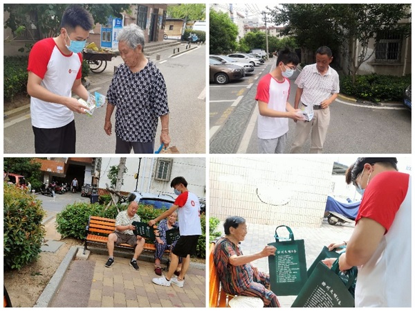 活动伊始,在臧铭老师的指导下,将本次队伍分成两个实践小队。一队负责向社区居民进行垃圾分类的知识宣传,主要通过垃圾分类宣传手册对居民进行细致地知识讲解,并向其发放环保布袋,增强民众绿色环保的价值观念,提高社区居民文明卫生意识和健康素质;另一队通过身体力行的方式,积极发扬不怕脏、不怕累的奉献精神,深入社区居民楼,对楼道乱摆乱放的杂物进行清扫,对不文明摆放的电动车进行位置正确调整。在活动过程中,两支小队分工合作,每名队员都热情高涨,以劳动为荣,乐在其中。“青”力出动新时代文明实践队的到来不仅为凤阳路社区增添了一道亮丽风景,也为社区居民带来了优美整洁的卫生环境。