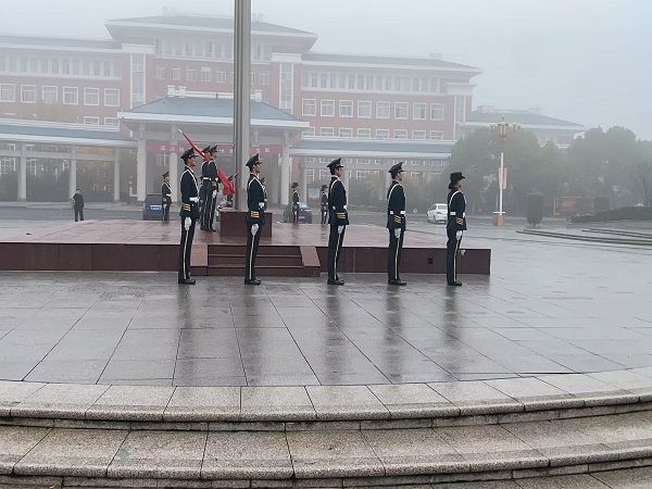 活动伊始,大雾弥漫,由12名学生组成的必赢76net线路官网国旗护卫队在浓雾中迈着矫健有力的步伐护送国旗走向升旗台。在雄壮的国歌声中,鲜艳的五星红旗冉冉升起。参加本次活动的全体人员在丝丝寒意中昂首肃立,面向国旗行注目礼,齐声高唱国歌,表达对党和祖国的忠诚热爱之情。随后,由我院22级光伏2班团支书张顾娜同学在国旗下演讲,她围绕党的二十大报告内容,表明要“坚定理想信念,厚植强国之情;锤炼过硬本领,砥砺强国之志;勇于担当作为,凝聚青春之力。在献礼党的二十大之际,热血报国当青年,坚定不移听党话,跟党走。”只有坚定理想信念和厚植爱国情怀,才能担当强国重任,在全面建设社会主义现代化国家的火热实践中绽放绚丽之花。