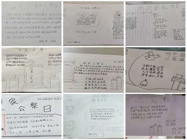 1937年12月13日,侵华日军在南京城开始了40多天惨绝人寰的大屠杀,30万同胞惨遭杀戮。南京大屠杀给了我们血的教训,也为我们敲响了警钟:牢记历史,勿忘国耻!我院青年学子具有坚定的爱国主义热情和决心,积极踊跃的报名参加了此次爱国主义教育活动。在诗词寄托哀思活动中,有学生写道:“我们悼念曾经的疼痛与耻辱,让阴险成为溺水者,让石碑上的灵魂刺痛寒冷的月光,为时间悲者纳入沉寂的哀鸣点燃万里江山”。也有学生写道:“半旗公祭悼英灵,大地苍天雨泪情;举国哀思千古颂,缅怀先烈跃征程”。同学们纷纷发挥主观能动性,将自己一片忠国爱国的赤子之心,寄情于诗词之中。最后,我院团总支也倡议青年学子们:铭记历史,珍惜和平,刻苦学习,奋发图强,努力成为中华民族伟大复兴道路的中坚力量,为实现国家富强民族复兴人民幸福的社会主义现代化强国贡献青春力量!