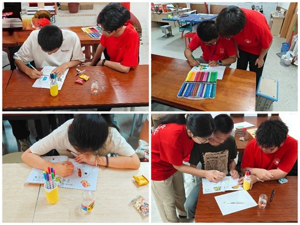 在图画填充阶段,志愿者引导星星孩子们用画笔表达自己的内心世界,通过色彩填充和线条描绘的组合,培养孩子们的审美能力和创造力。在这个环节中,孩子们充分发挥了想象力,绘画出了一幅幅充满童趣的作品。
