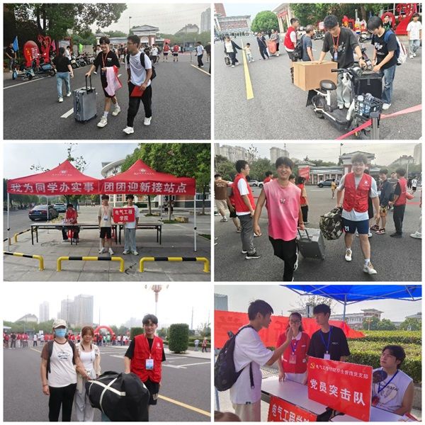 在报道现场,迎新志愿者们由团学干事和主动参与迎新的同学们组成。在党员的模范带头下,迎新工作有条不紊地进行,展现出学院对新生的高度重视,主动的去帮助新同学。从校门口的身份验证到宿舍的分配入住,从搬运行李、指引路线到解答疑问,每一步都能看见他们的身影,他们的身影穿梭在校园的每一个地方,成为一道靓丽的风景线。他们始终面带微笑,耐心细致,让每一位新同学都感受到了电气工程学院的温暖与关怀。