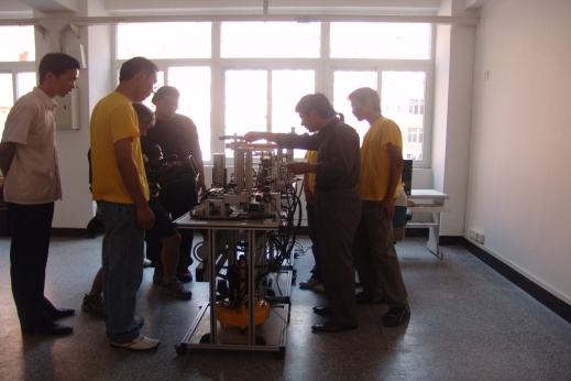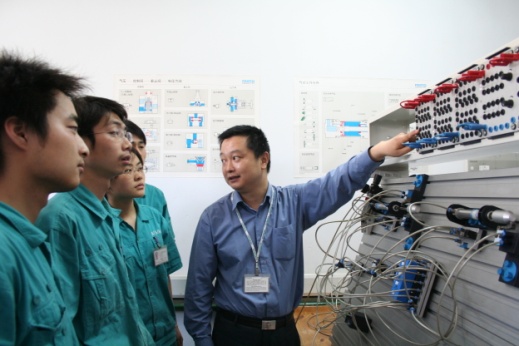 工业机械专业是我院与博西华家电制冷有限公司(德资企业)采用“订单培养、双元施教”人才培养模式定向培养掌握工业机械相关知识和高端技能的工程技术人才。本专业严格按照德国“双元制”教学模式组织教学。实施“双元制”教学,理论教学时间与实践教学时间严格按照1:2的比例执行。理论课教学由学院承担,实训课教学由企业承担。教学计划由校企双方共同商定,理论课教材根据企业要求加以选择。考试由校企双方分别组织实施:一方面经过在校三年学习,成绩合格者可获得省教育厅颁发的高职高专业学历证书;另一方面必须参加德国工商行会(AHK)的验收认证考试,合格者获得德国AHK的认证证书;在具体实施过程中一周上理论课,两周上实训课,三周一轮,“工学交替”。学生经过23个模块115个训练项目学习,再加上掌握了相关的理论知识,毕业生的素质非常高。按照这种模式培养出来的学生可以胜任工业机械岗位群的任意作业。