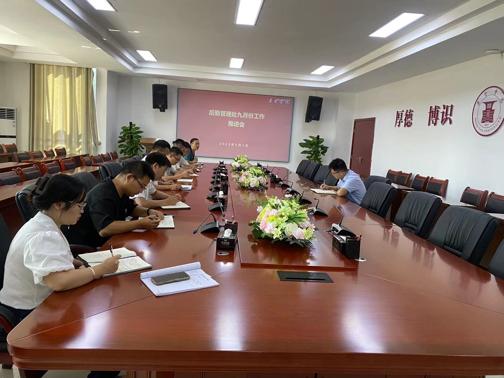 2023年9月5日上午9点50分,Beat365中文官方网站党委委员、副校长闫松显组织后勤管理处全体人员在行政楼二楼会议室,召开后勤管理处9月份工作推进会。