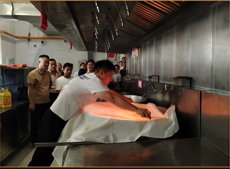 培训围绕食品及消防安全相关法律法规展开系统讲解,结合典型案例进行深入剖析,明确食材采购、加工制作、储存管理、销售服务及食品留样等各个环节的具体规范;现场模拟食堂常见火情场景,组织全体参训人员实际操作灭火器、灭火毯等消防设备,并开展应急疏散演练,切实做到“懂灭火、懂逃生、懂安全”,将安全技能内化于心、外化于行。