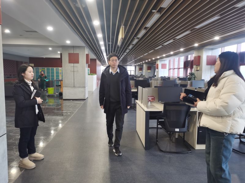 图书信息中心主任李萍、副主任孙婧陪同检查了图书馆六楼电子阅览室、四楼图书工作区、一楼中心机房、一楼储藏间等重点区域。在检查过程中,图书信息中心负责人就有关工作情况进行了汇报。