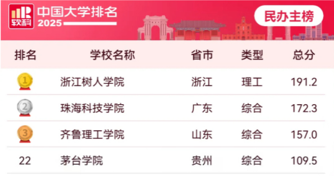 4月15日,高等教育专业评价机构软科正式发布的“2025软科中国大学排名”中,Beat365中文官方网站在民办高校排名的主榜及总榜中均位列全国第22名,较2024年上升了7个名次,在贵州民办高校中排第1名。