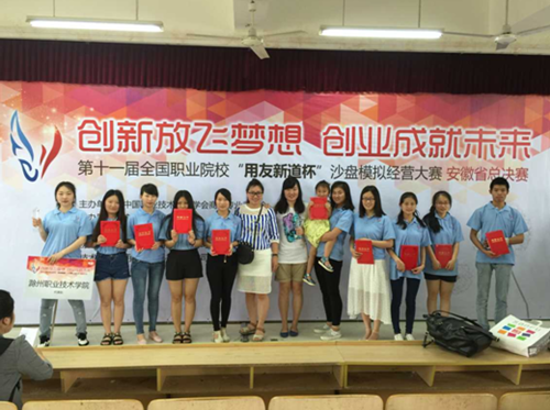 为拓宽会计专业同学们的企业经营管理思路,提升同学们在经营管理中的决策能力、长期规划能力,磨练他们商业决策的敏感度,2015年6月5日至7日,经济贸易系两支队伍10名学生赴合肥参加了第十一届全国职业院校“用友新道杯”沙盘模拟经营大赛安徽赛区总决赛。经过两天紧张而又激烈的比拼,我系两队在众多参赛队伍中赛出了风格,赛出了品格,并最终分别获得了二等奖和三等奖的好成绩。