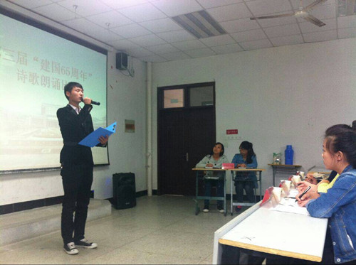 2014年10月27日,为了丰富同学们的课余生活,陶冶同学们的文化情操,经济贸易系团总支学生会在致真楼1102教室开展了建国65周年诗歌朗诵比赛。