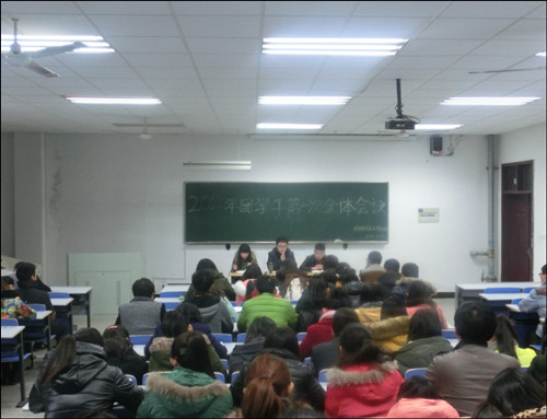 为了使系部同学更快、更好的融入学习氛围,2014年2月17日上午,在1119教室,团总支书记何堃主持召开了经贸系2014年第一次团学干全体会议。