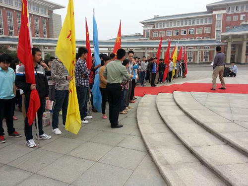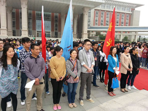 2013年5月4日清晨,经贸系团总支、学生会组织300名同学参加了院团委举行的纪念五四青年节升旗仪式。