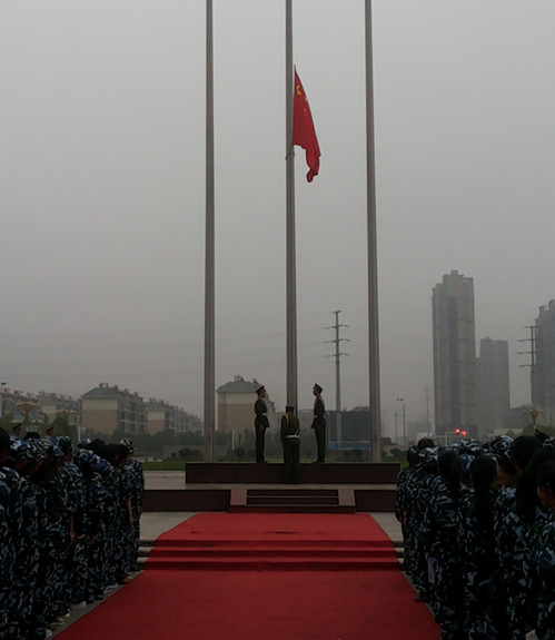 2013年9月23日清晨,由经贸系团总支、学生会组织开展的新生军训主题升旗仪式在综合楼前进行。经贸系学生代表王雅琳在国旗下发表了演讲,表达了新生们顽强拼搏、锐意进取的壮志雄心。