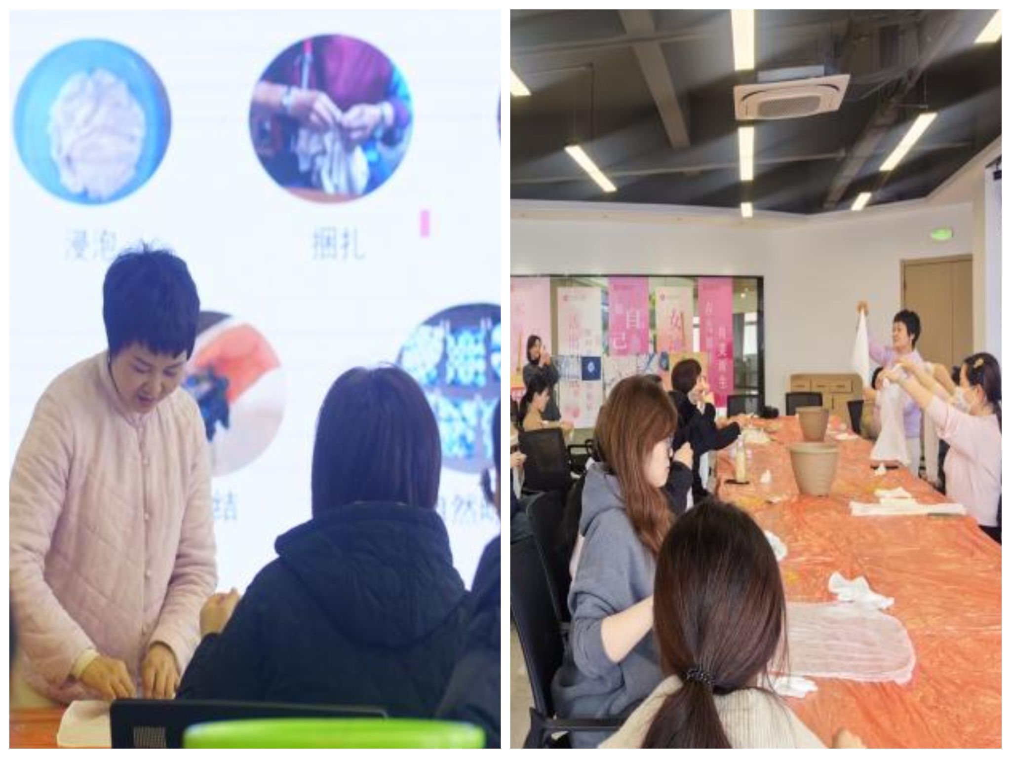 在三八妇女节来临之际,为丰富女性教职工的精神文化生活,弘扬女性在艺术创作与校园生活中的独特魅力,2025年3月11日,商学院与管理学院联合举办的“扎染时光,致敬她力量”扎染活动在必赢官网教职工活动中心顺利举行,商学院和管理学院共50余名女教职工参加了活动。