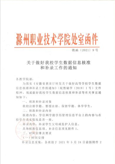 关于做好必赢官网学生数据信息核准和补录工作的通知 教函〔2021〕9号