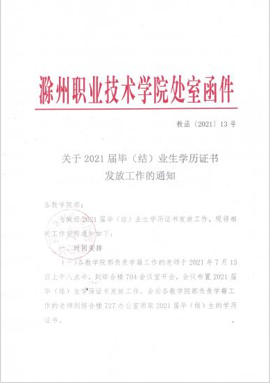 关于2021届毕(结)业生学历证书发放工作的通知 教函〔2021〕13号