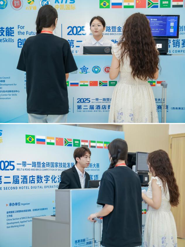 “一带一路暨金砖国家技能发展与技术创新大赛”是经金砖国家工商理事会批准的重要国际赛事,旨在推动金砖国家间教育合作、技能开发和人文交流。本届“酒店数字化运营与营销”赛项紧密结合全球酒店业数字化转型浪潮,全面考核选手在酒店核心理论、前厅数字化技术应用、运营数据分析、营销策划优化等方面的综合能力,是对参赛者理论水平、实践技能与创新思维的一次高强度检验。当前酒店亟需既懂酒店管理、又精通数字技术、还擅长数据驱动决策的复合型、创新型人才。此次大赛既是对这一行业趋势的精准回应,也为高校人才培养指明了方向。