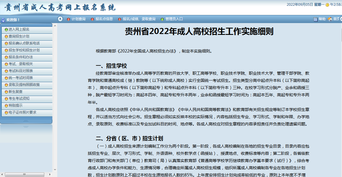(转发)贵州省2022年成人高校考试招生网上报名操作手册