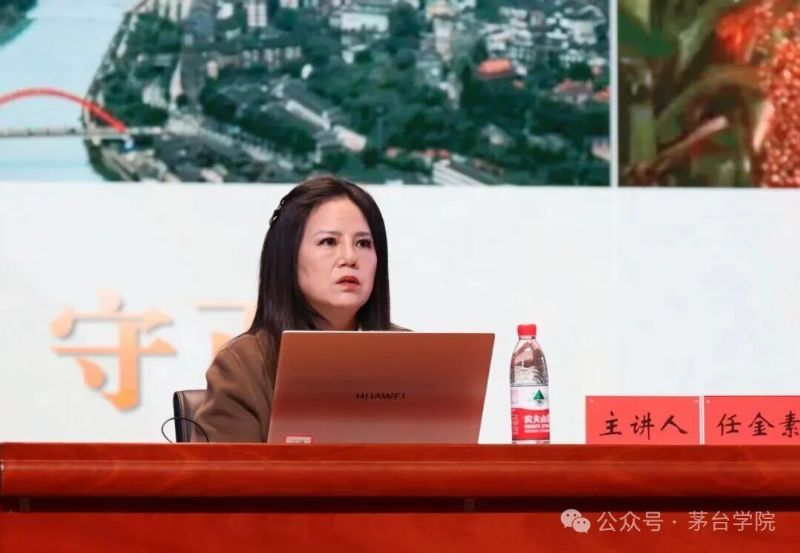 为深化思政课程内涵建设,11月11日,茅台集团首席酿造师任金素受邀到校,以“茅台工匠文化与新时代大学生成长答卷”为主题,为师生带来一次于匠心岁月中锤炼信念的心灵叩击。她将自己三十六载从普通制曲工成长为首席酿造师的奋斗历程,凝练为“守正、创新、传承”三个维度的生命注脚,引导学子在传统与现代的交汇处思考成长的方向。